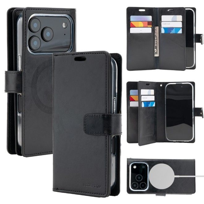 Goospery - iPhone 17 Pro Handyhuelle - Kunstleder Bookcover - MagSafe Mansoor Series - schwarz