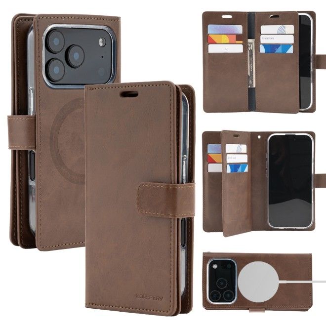 Goospery - iPhone 17 Pro Handyhuelle - Kunstleder Bookcover - MagSafe Mansoor Series - braun