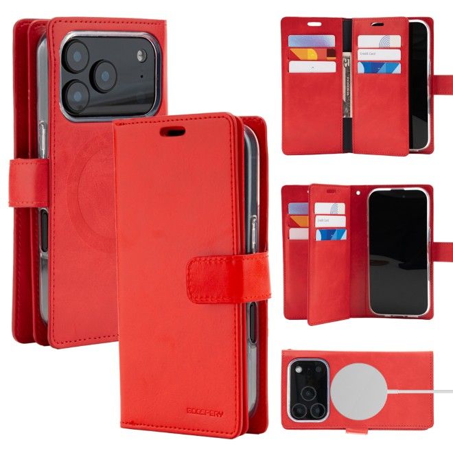 Goospery - iPhone 17 Pro Handyhuelle - Kunstleder Bookcover - MagSafe Mansoor Series - rot