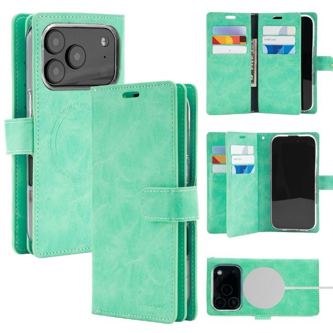 Goospery - iPhone 17 Pro Handyhuelle - Kunstleder Bookcover - MagSafe Mansoor Series - mint