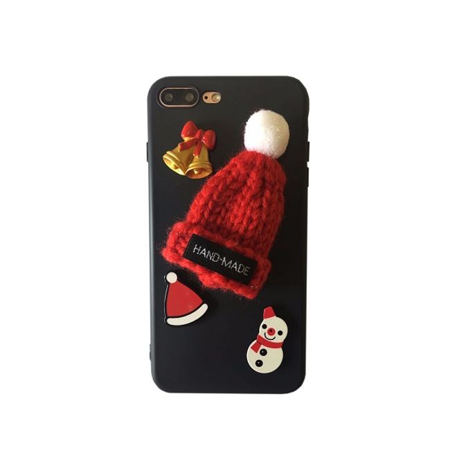 Handmade - iPhone 8 Plus / 7 Plus Hülle - TPU Soft Case - mit roter Mütze und Wintersujets - schwarz