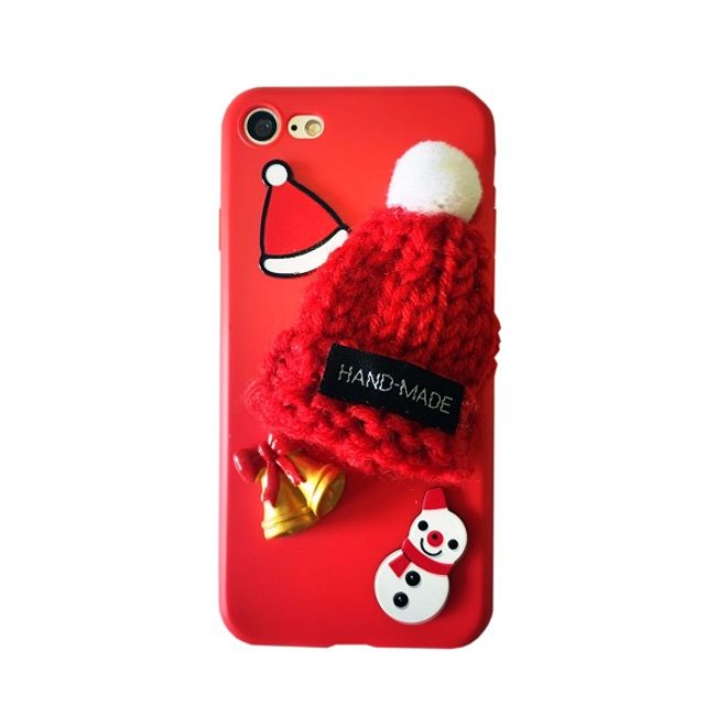 Handmade - iPhone 8 Plus / 7 Plus Hülle - TPU Soft Case - mit roter Mütze und Wintersujets - rot