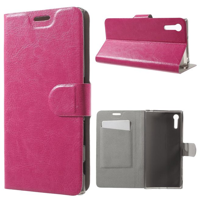 Handy Case für Sony Xperia XZ/XZs - Crazy Horse Leder Hülle - mit Kreditkartenslots - rosa