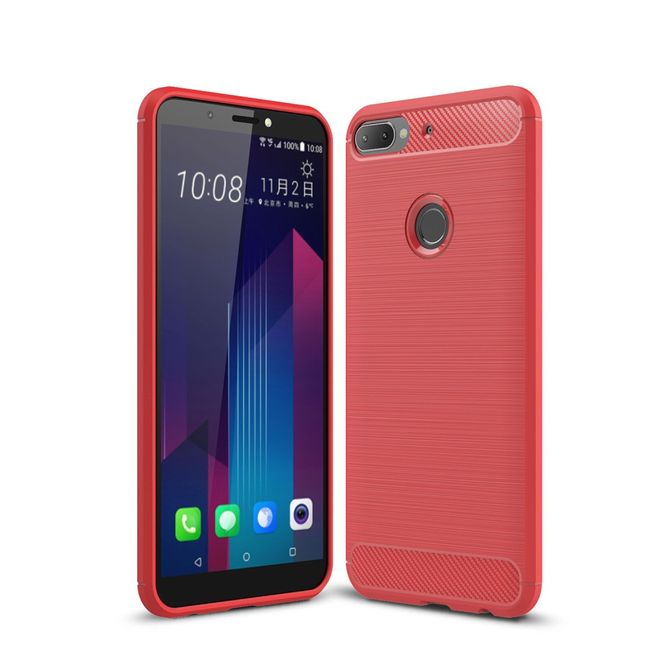 HTC Desire 12 Plus Handyhülle - Carbon Fiber TPU Softcase Series - rot