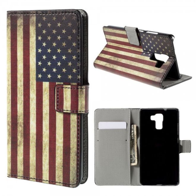 Huawei Honor 7 Leder Case mit USA Flagge retro-style