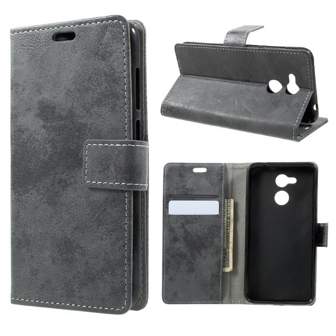Huawei Honor 6C Pro / V9 Play Handy Case - Hülle aus Leder - im Vintage Look - grau