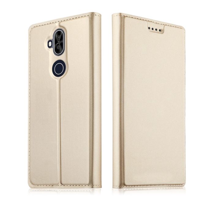 Asus Zenfone 5Z (ZS620KL) Handy Hülle - Case aus Leder - mit Standfunktion - gold