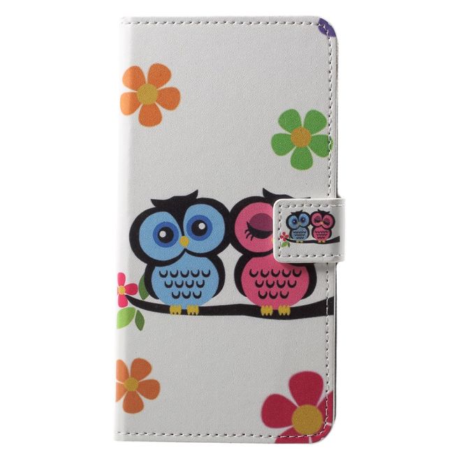 Huawei P20 Handy Hülle - Leder Bookcover - mit Standfunktion - verliebtes Eulenpärchen