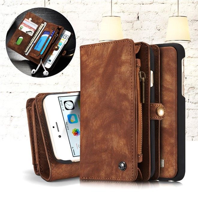 Caseme - iPhone 6/6S Handyhülle - Leder Portemonnaie mit abnehmbarer Plastik Hülle - kaffeefarben