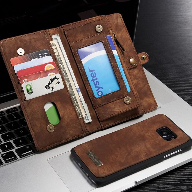 Caseme - Handyhülle für Samsung Galaxy S7 Edge - aus Plastik/Spaltleder - Retrolook - kaffeefarben