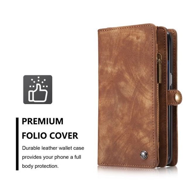 Caseme - Leder Portemonnaie mit abnehmbarer Plastik Hülle für Samsung Galaxy S8 Plus - kaffeefarben