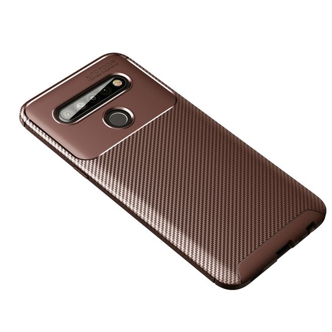 LG K61 Handyhülle - Carbon Fiber TPU Softcase Series - braun