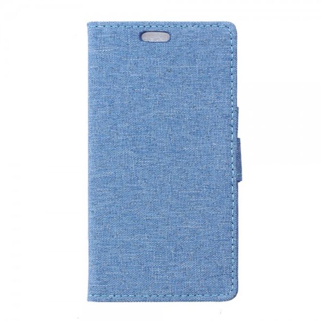 Motorola Moto X Play Leder Hülle mit stoffartiger Textur und Standfunktion - hellblau