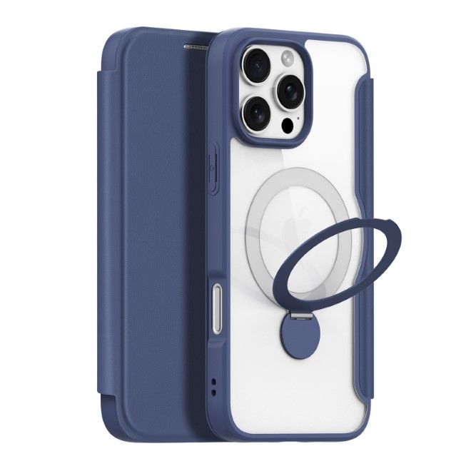 Dux Ducis - iPhone 16 Pro Max Hülle - Leder Bookcover mit Ring Standfunktion - Skin X Pro 360° Ring Stand Series - blau