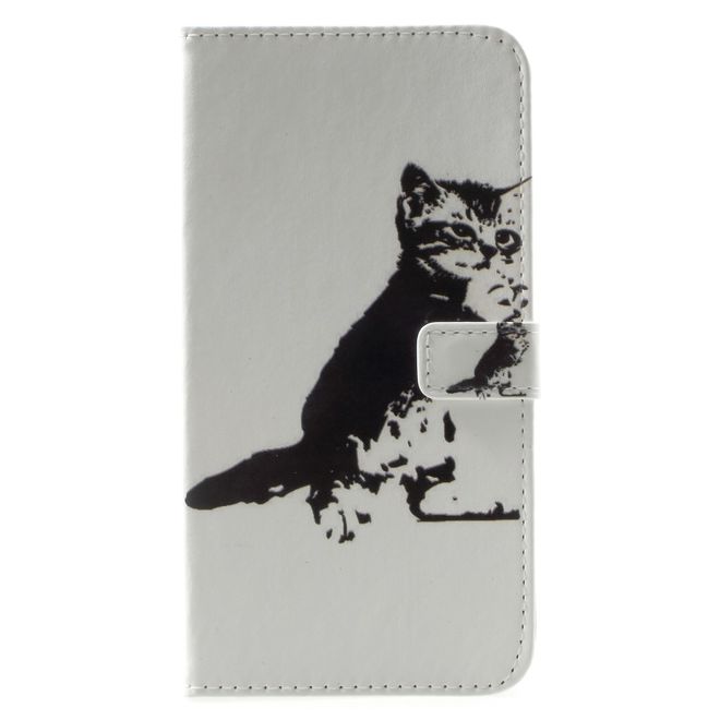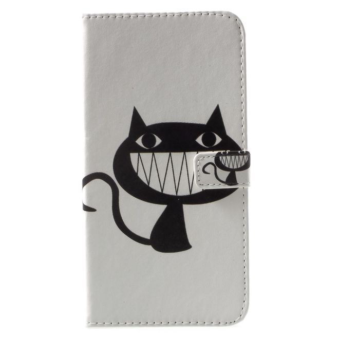 Samsung Galaxy A8+ (2018) Handy Hülle - Bookcover aus Leder - schwarz-weisse Katze