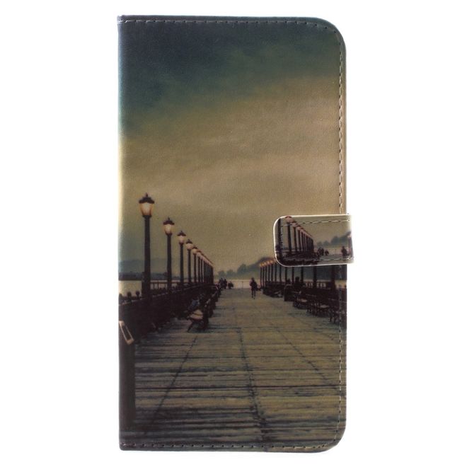 Samsung Galaxy A8+ (2018) Handy Hülle - Bookcover aus Leder - Dock bei Sonnenuntergang