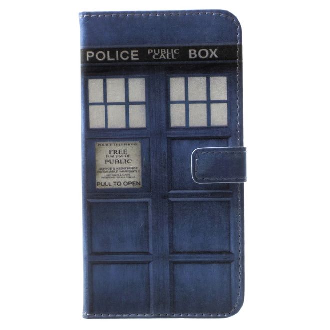 Samsung Galaxy A8+ (2018) Handy Hülle - Bookcover aus Leder - blaue Polizei Box