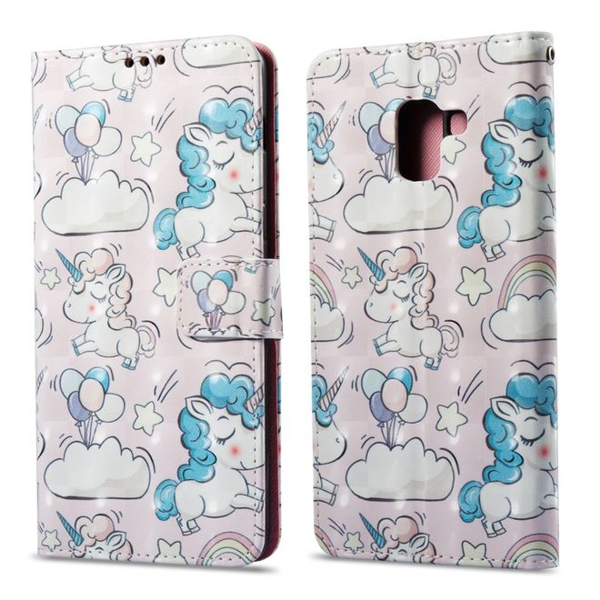 Samsung Galaxy A8+ (2018) Handyhülle - Case aus Leder - mit 3D Effekt - Einhörner