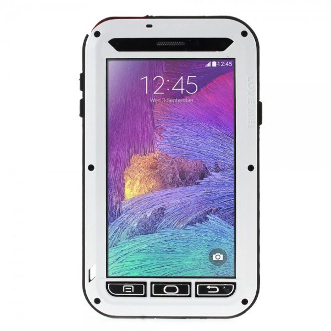 Samsung Galaxy Note 4 LOVE MEI Ultrarobustes Metall, Silikon und gehärtetes Glas Cover - weiss