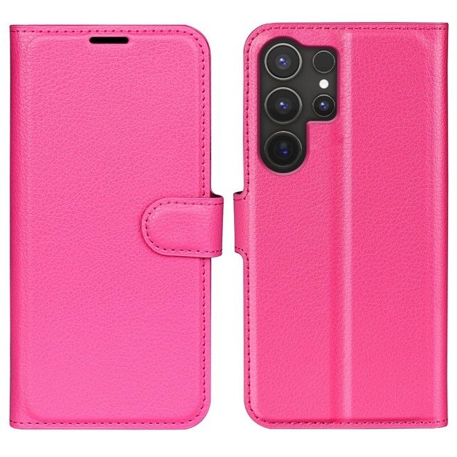 Samsung Galaxy S25 Ultra Handy Hülle - Litchi Leder Bookcover Series - rosa