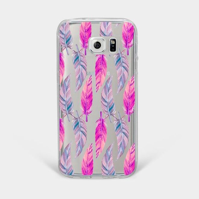 Samsung Galaxy S6 Handyhülle - TPU Soft Case - pinke Federn