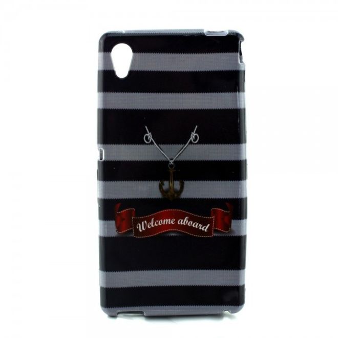 Sony Xperia M4 Aqua Elastisches, leicht glänzendes Plastik Case mit Anker und Streifen