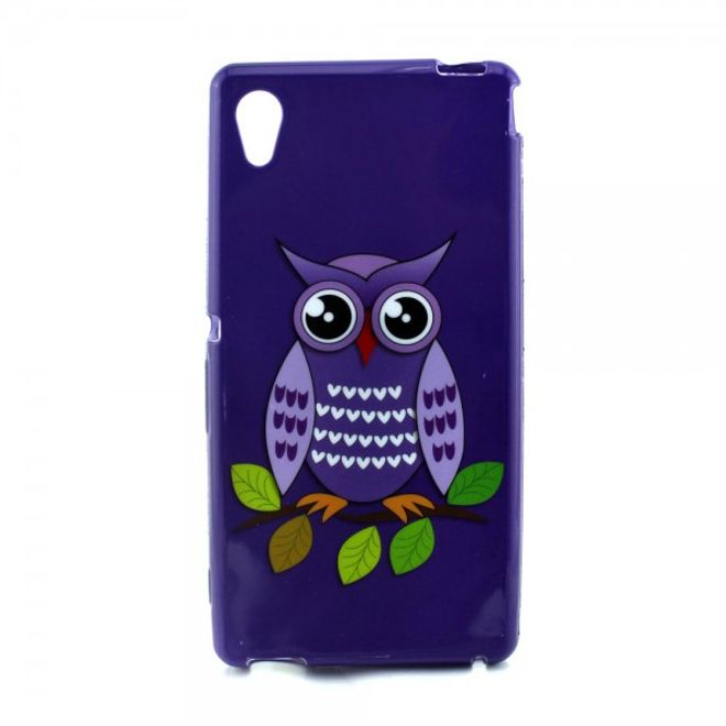 Sony Xperia M4 Aqua Elastisches, leicht glänzendes Plastik Case mit purpurner Eule
