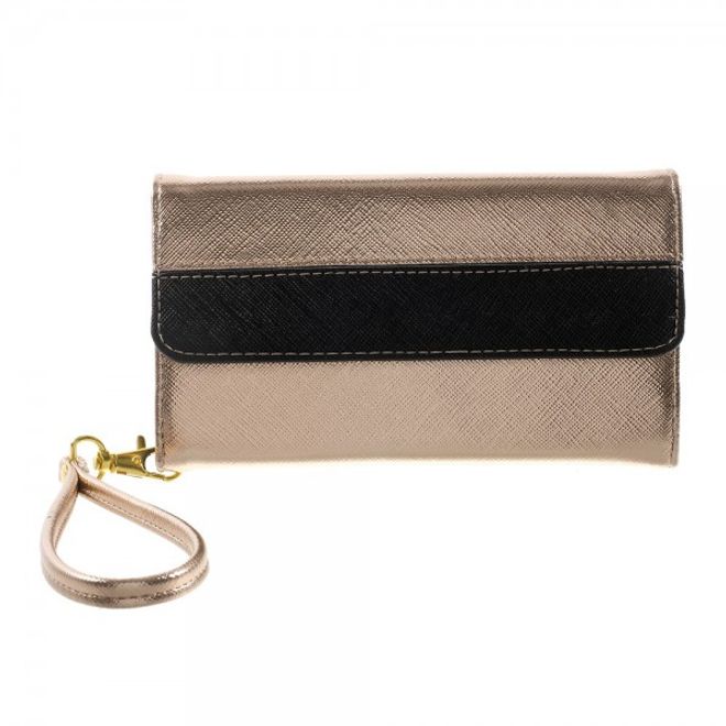 Universelles, zweifarbiges Leder Portemonnaie mit integrierter Smartphone Halterung bis 16,5x8cm - champagnerfarben