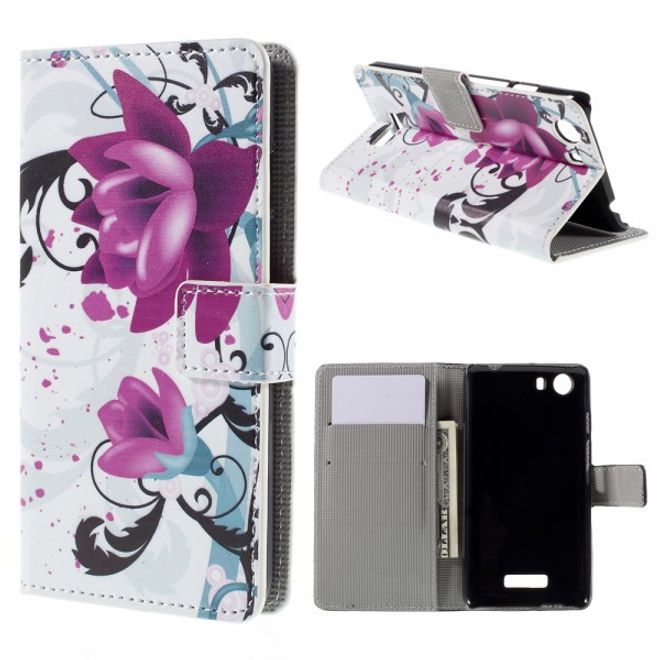 Wiko Bloom2 Leder Case Hülle mit Lotus Blumen