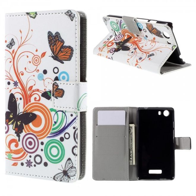 Wiko Bloom2 Leder Case Hülle mit Schmetterlingen und Kreisen