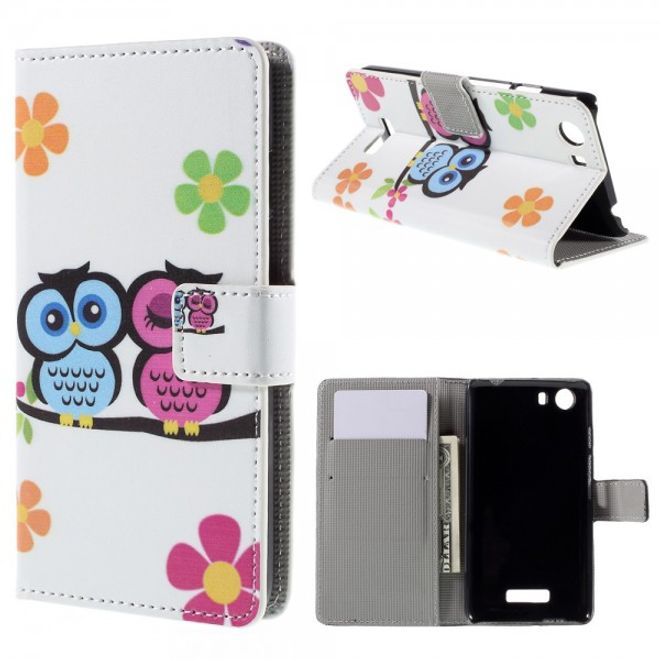 Wiko Bloom2 Leder Case Hülle mit verliebtem Eulenpärchen