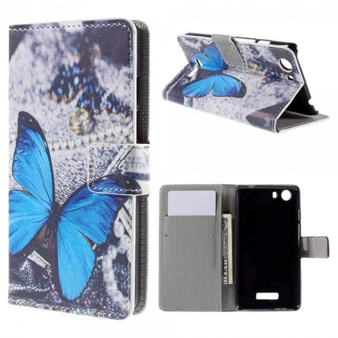 Wiko Bloom2 Leder Case Hülle mit wunderschönem, blauem Schmetterling