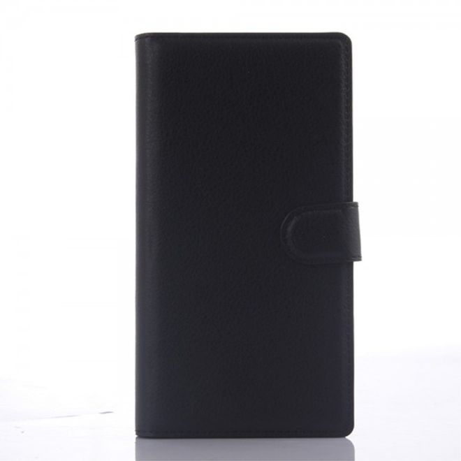 Wiko Selfy 4G Leder Cover Case mit Litchitextur und Kreditkartenslots - schwarz
