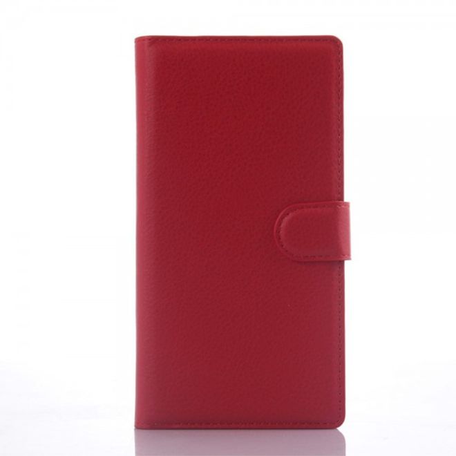 Wiko Selfy 4G Leder Cover Case mit Litchitextur und Kreditkartenslots - rot