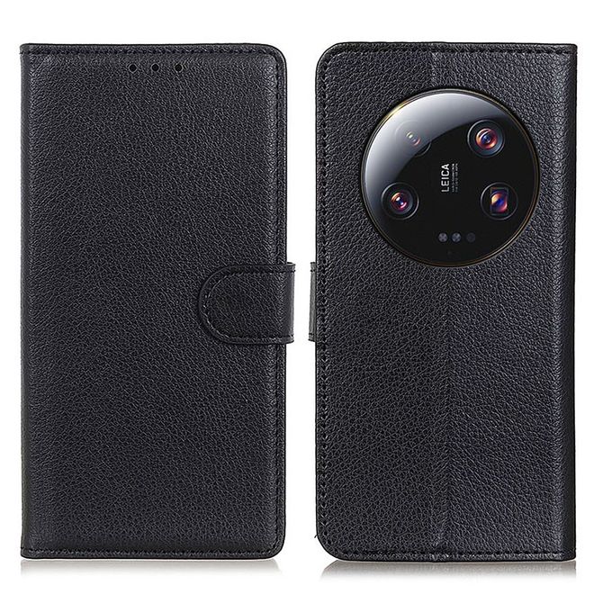 Xiaomi 14 Pro Handy Hülle - Litchi Leder Bookcover Series - schwarz