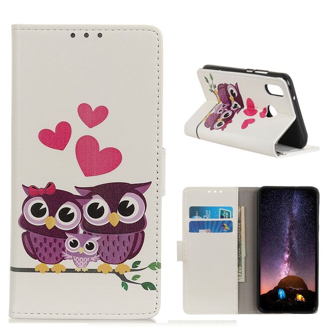 Xiaomi Redmi 7 Handyhülle - Leder Bookcover Image II Series - glückliche Eulen