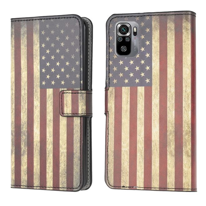Xiaomi Redmi Note 10S / Redmi Note 10 4G Handy Hülle - Leder Bookcover Image Series - Retro USA Flagge