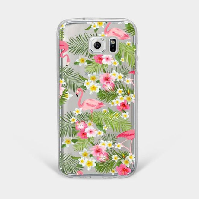 Galaxy S6 Edge Handyhülle - TPU Soft Case - Flamingos und Blumen