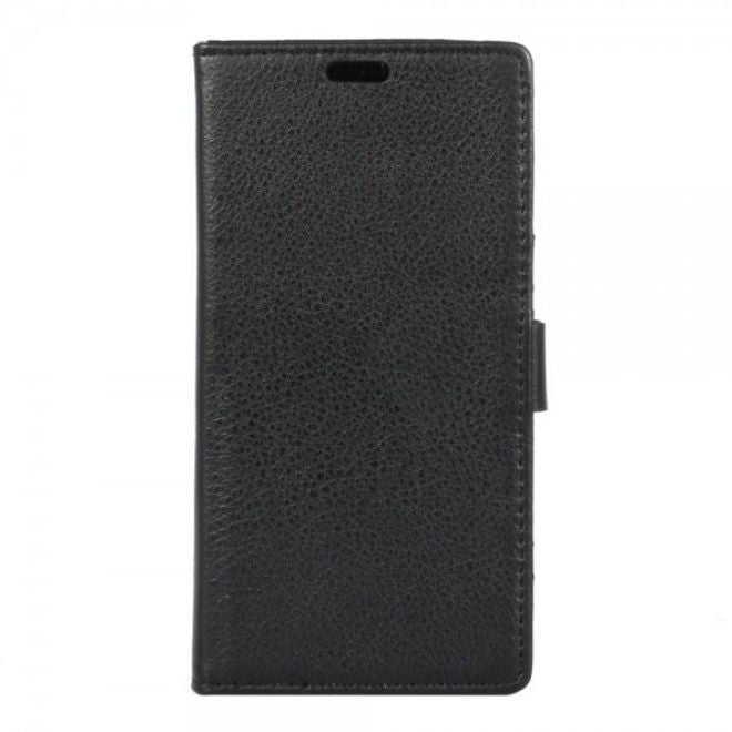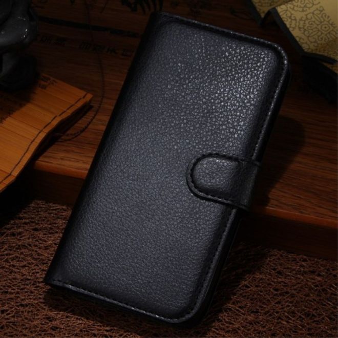 Alcatel OneTouch Idol 4 Klassische Leder Cover Handy Hülle mit Litchitextur und Standfunktion - schwarz