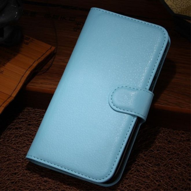 Alcatel OneTouch Idol 4 Klassische Leder Cover Handy Hülle mit Litchitextur und Standfunktion - blau