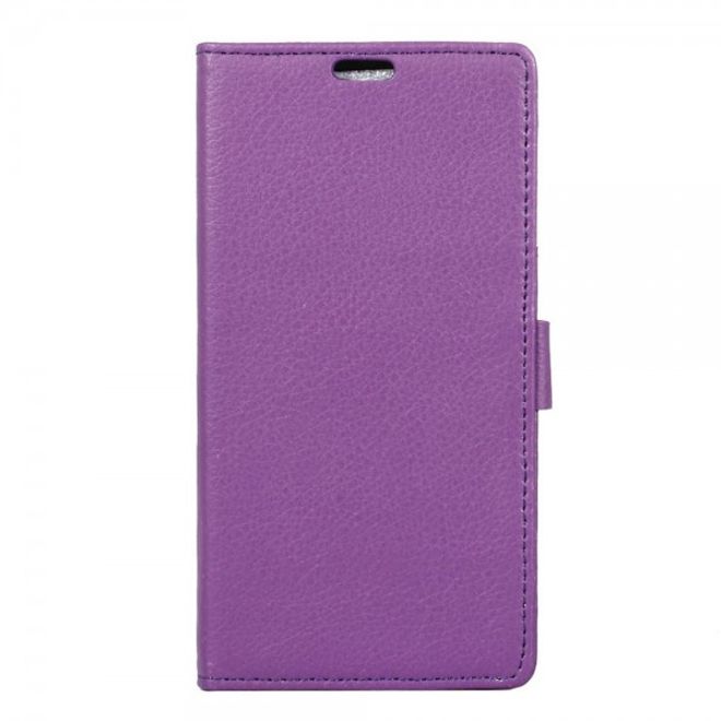 Alcatel OneTouch Idol 4 Klassische Leder Cover Handy Hülle mit Litchitextur und Standfunktion - purpur