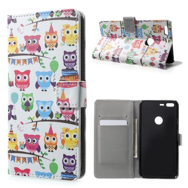 Google Pixel XL Handyhülle - Case aus Leder - mit Standfunktion - viele kleine Eulen