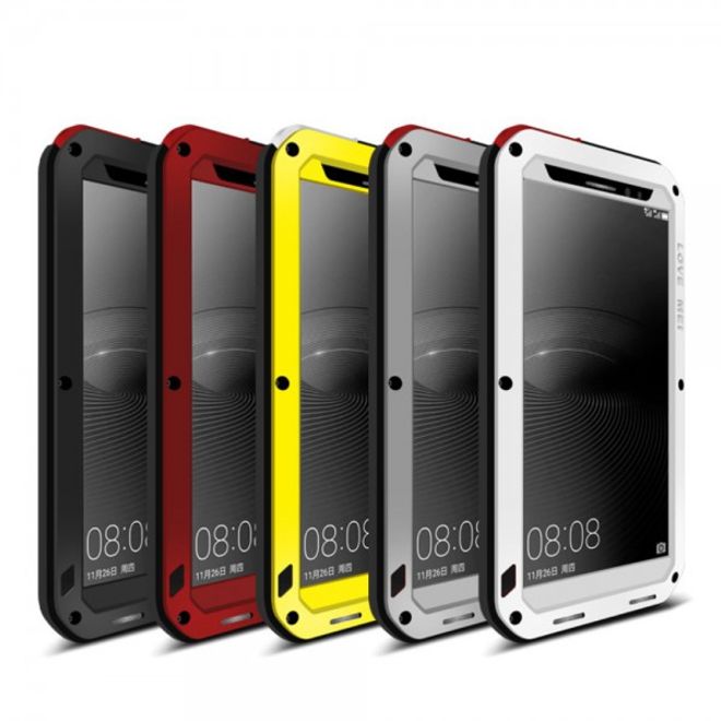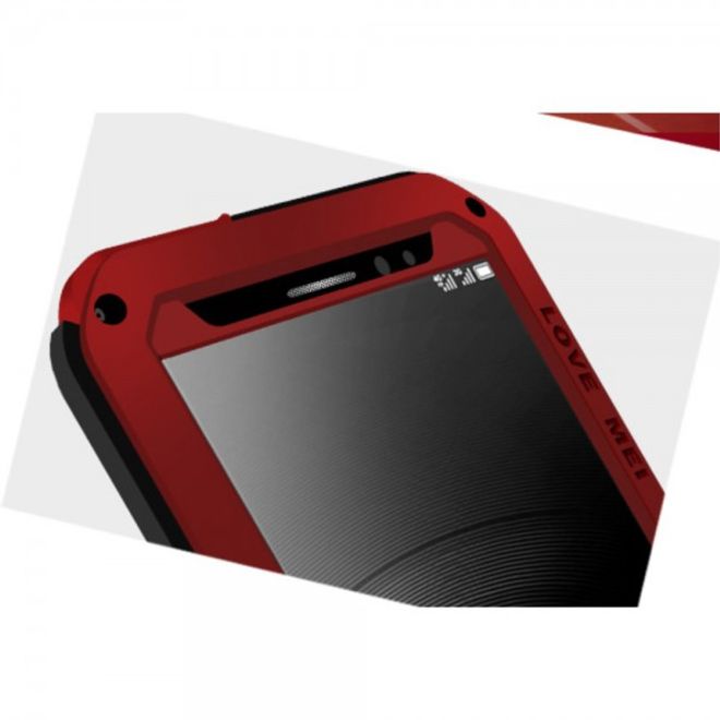 Huawei Mate 8 LOVE MEI Ultrarobustes Metall, Silikon und gehärtetes Glas Cover Case - rot