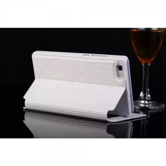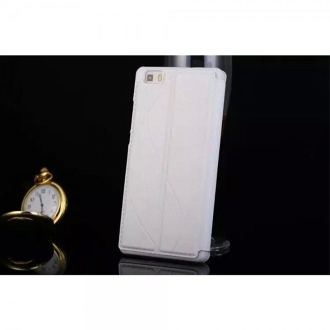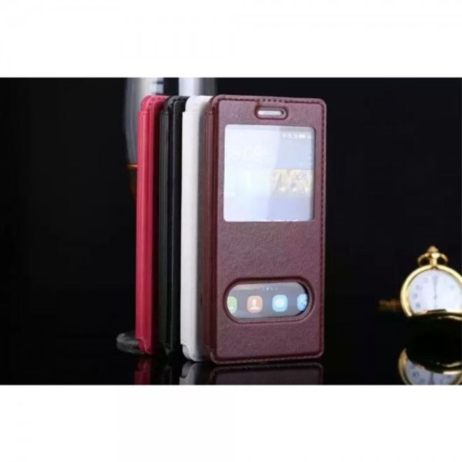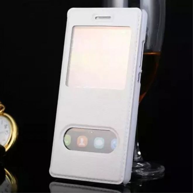 Huawei P8 Lite Schickes Leder Case mit zwei Fenstern - weiss
