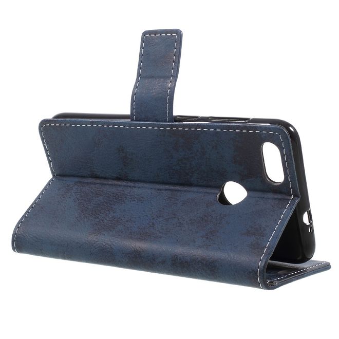 Huawei Y6 Pro (2017) Handy Hülle - Case aus Leder - Vintage Look - mit Standfunktion - blau