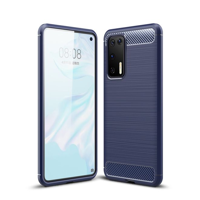 Huawei P40 Handyhülle - Carbon Fiber TPU Softcase Series - blau