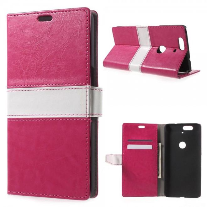 Huawei Nexus 6P Crazy Horse Leder Case Handyhülle mit Kontrastfarben und Standfunktion - rosa
