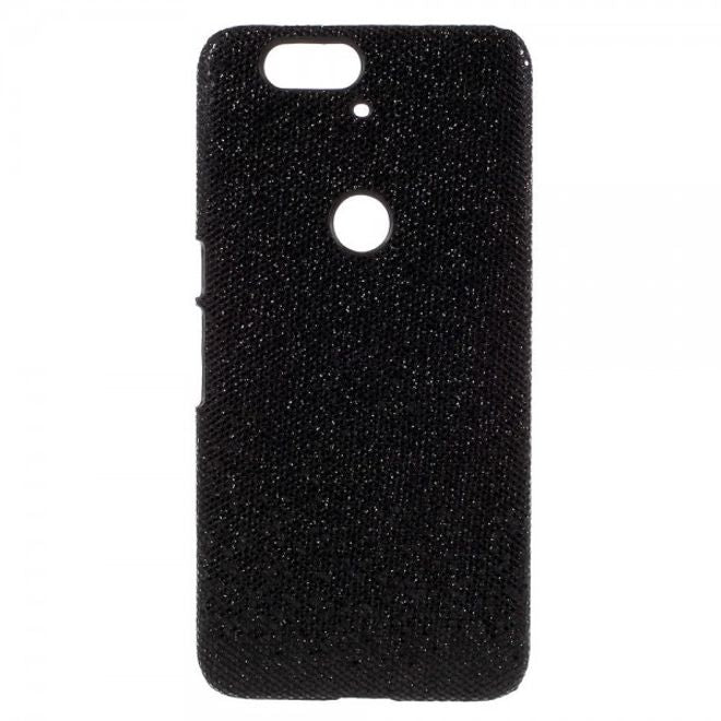 Huawei Nexus 6P Glitzernde Hart Plastik Case Hülle mit lederartiger Oberfläche - schwarz