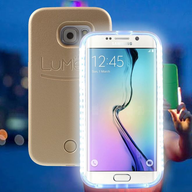 Lumee - Hülle für Samsung Galaxy S6 - Case aus Plastik - mit Selfie LED Licht - gold