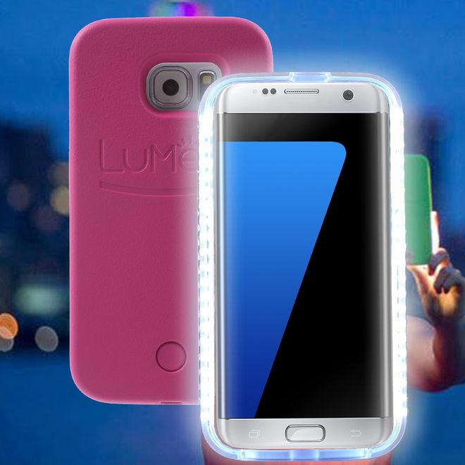 Lumee - Hülle für Samsung Galaxy S7 Edge - Case aus Plastik - mit Selfie LED Licht - rosa